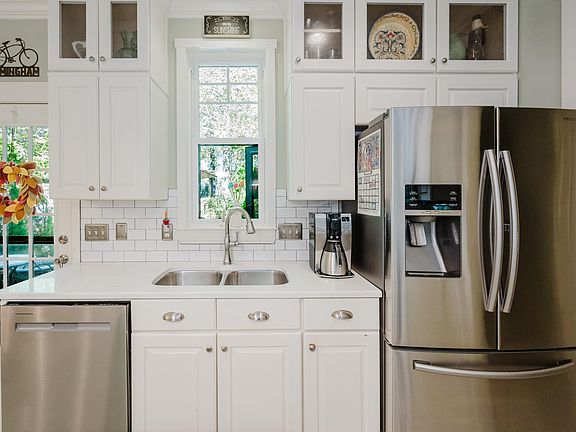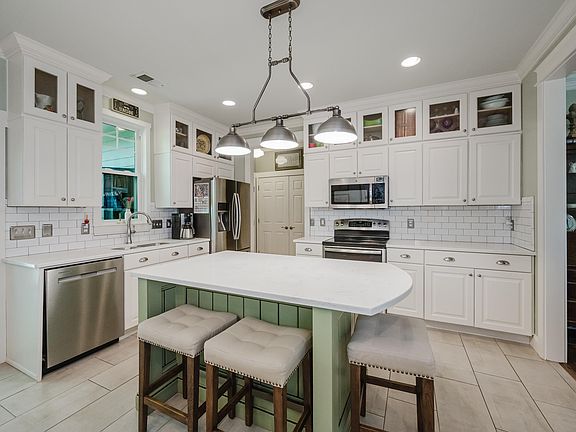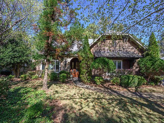 Charming Custom Built 4 Bedroom 3 Bath with Arched Stone Entrance ~ Hardwoods ~ Spotless ~ See Through FIREPLACE from Great Room to Kitchen Gourmet Style Kitchen with Built in Coffee Bar Area/Glass Cabinet Doors/Quartz Tops/Bar/Stainless/Double Oven and French Door onto Stone Patio Area with Privacy Fencing ~ White Cabinets with Tile Backsplash and Floors ~ 2 Large Bedrooms on the Main Level ~ Oversize Primary Bedroom ~ Primary Bath features Soaker Tub/Separate Shower Tile with Seat ~ Glass Block Style Window over Soaker Tub ~ 2nd Bedroom Down is currently used as a Library with a Full Wall of Built In Cabinets and Private Bath ~ Laundry on the Main Level ~ 2 Additional Bedrooms and 1 Full Bath Upstairs with Attic Storage ~ Roof was installed per seller in 2014 with a 60 year roof. DUAL HVAC replaced within the last 5 years per seller. Hot Water Heater 2023 ~ New Windows approximately 6 years old. Rear Entry Garage ~ Hardie Plank Siding/Stone & Shake Accents ~ Custom Lighting!