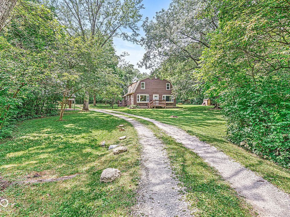 Peace . Tranquility . Serenity . A unique offering just outside the "Golden Triangle" with a sense of seclusion, yet the ease of convenience to Eagle Creek + retail + highway access. Privacy + bucolic surroundings. Relax on the 1.4-acre parcel + watch the deer pass through. Winding drive leads to a charming 3500sqft cottage nestled deep on the property. This home has been so lovingly transformed + maintained over the years: Incredible custom kitchen, gorgeous hardwoods, warm + inviting color palette. Charm + whimsy around every corner. Main level primary + secondary bedrooms, w/fab loft + two additional bedrooms upstairs. Cavernous attic storage. Project person? Enjoy the oversized garage + multiple bonus rooms off the utility room. Convenient covered parking + additional shed too!