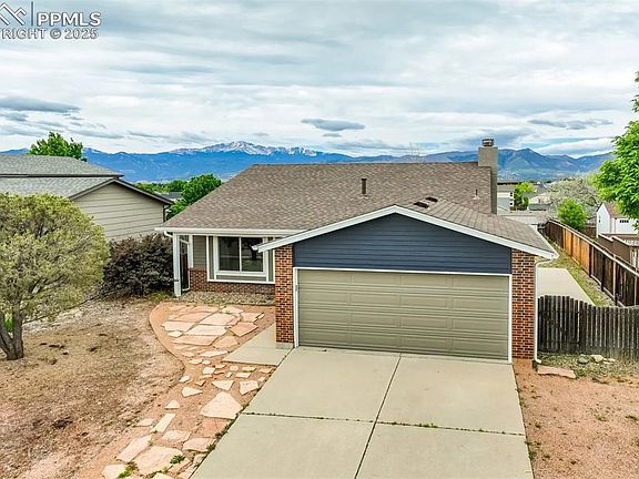 The Perfect Move-In Package! This beautifully updated, fully furnished 3-bedroom, 2-bath home with a 2-car garage offers stunning Pikes Peak views from inside and out. Enjoy the warmth of luxury vinyl plank flooring in the kitchen and bathrooms. The kitchen boasts granite countertops and stainless steel appliances, perfect for entertaining. The primary suite features its own private deck with breathtaking mountain views and an updated full bath with granite vanity and tile shower/tub surround. Downstairs, a cozy fireplace enhances the inviting lower-level family room. Step outside to the backyard with a storage shed, backing to a walking path for extra privacy and access to the outdoors. 2023 Exterior Paint. 2024 Roof. NO HOA!!! Move right in and start enjoying the Colorado lifestyle!
