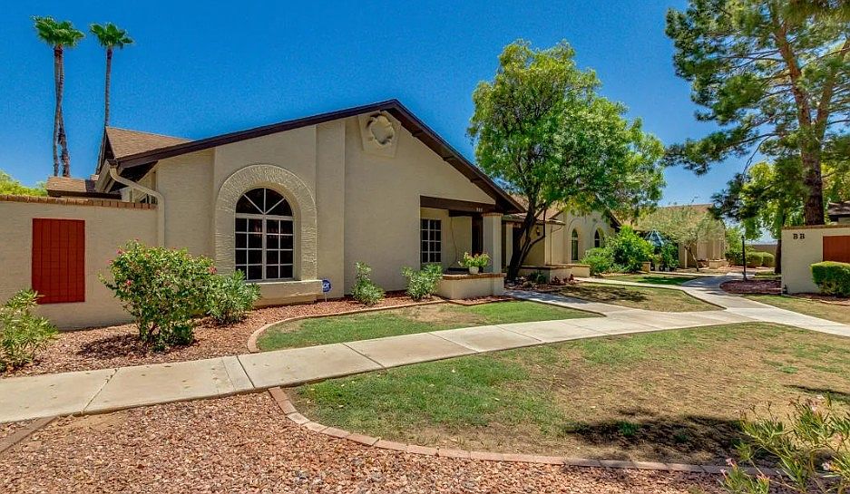 Charming 2 Bedroom 2 Bath split floorplan (bedrooms on opposite sides of the home) with vaulted ceilings. This is such a great home in a quiet very well maintained community with swimming pool and spa, beautiful tree-lined grounds, covered porch, and assigned covered parking! This is also just across the street from the coveted Peoria Pines Golf Course and restaurant.
