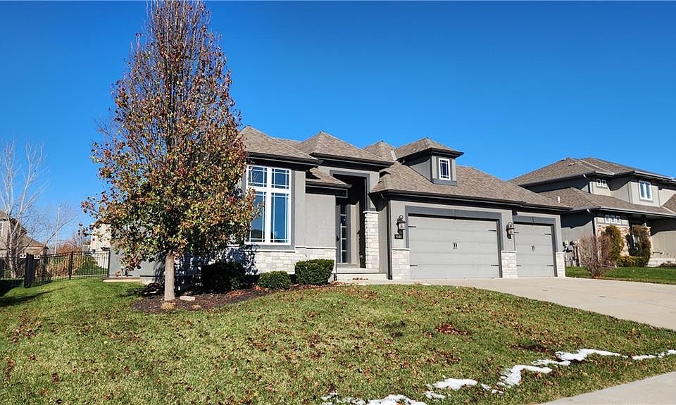This is the Franklin Plan. You are going to love this warm and inviting home with the open floor plan and high ceilings on the main level of this beautiful 4 bedroom home! The location of this house is absolutely perfect. You will be close to the airport and Zona Rosa, and close to major highways. This like new home includes 2 bedrooms on the main level, and 2 bedrooms in the basement, each with walk in closets and egress windows. Also in the basement is a large great room with a wet-bar complete with a refrigerator and ample cabinets. The gourmet kitchen includes stainless appliances with a built in oven and microwave, along with a 6 burner gas cooktop. The fenced back yard includes a covered patio right off the dining area. As you enter the kitchen from the garage, there is a good size pantry. The laundry is located right off the primary bedroom. Seller had the AC recently replaced. Washer/Dryer and large stainless refrigerator all stay. Seller is providing a one year Cinch Home Warranty for your protection.