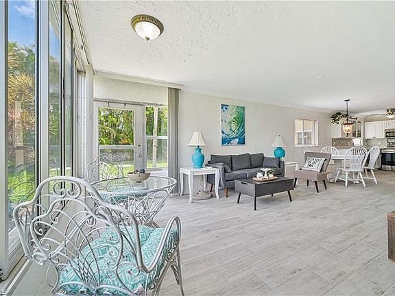 This renovated, turn-key first-floor condo offers a fantastic opportunity for full-time living, a second home, a starter home, or an investment property to accumulate equity. All newer furniture. No stairs to worry about, this 2-bedroom, 2-bath unit is bright and spacious with lots of natural light throughout. The wall to the lanai has been removed, expanding the great room and creating a sunny Florida room with large sliding windows that open to a beautifully landscaped area. The entire unit features new tile floors, adding a fresh and modern touch. The updated kitchen boasts brand-new appliances, and the owners have cleverly converted the storage unit outside the front door into a private laundry area, offering added convenience and extra storage. This turnkey-furnished home is perfectly located in South Ft. Myers, just minutes from dining, shopping, Lakes Park, and the stunning beaches of Ft. Myers, Sanibel, and Captiva. The pet-friendly community offers an array of amenities including a pool, tennis court, bike racks, horseshoes, a grill area, and boat parking, making this condo the ideal place to live, vacation, or rent for additional income.