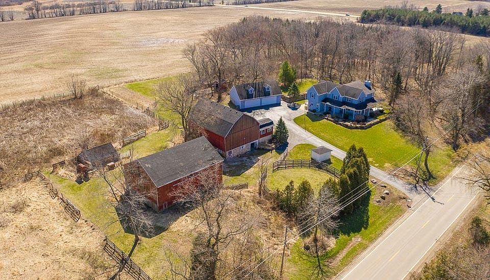 Country living at its finest! 5 acre hobby horse farm with beautiful farm house, 2 barns with horse stables, and giant 4.5 car garage! Wrap around porch invites you to sit and look over your gorgeous parcel of land. Entering this home takes you into a huge connected living room/ family room with natural fireplace. Kitchen and dining room provide plenty of space for a large dining room table for entertaining family or friends. Upstairs consists of large landing/office, 4 full bedrooms and beautiful bathroom. Hot tub room upstairs is plumbed and ready! Access to second floor deck from upstairs bedroom. Barns, sheds, and garage means plenty of room for all your toys!! New furnace and AC 2018, Chimney rebuilt 2019, new roof on barn!