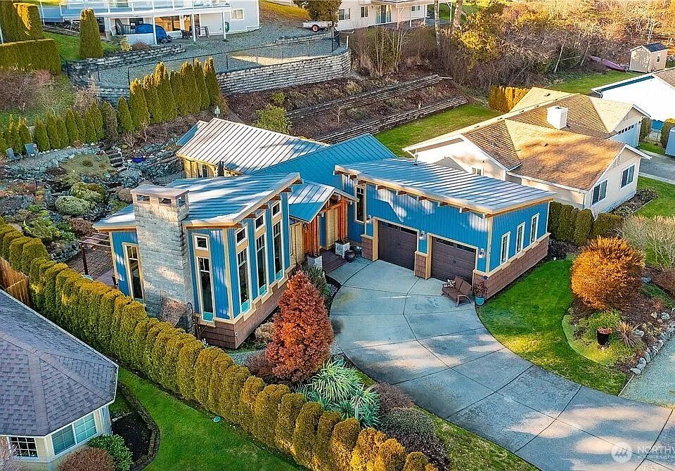 One of Birch Bay Village's finest homes with exceptional craftsmanship and design. No details were left out in this stunning and contemporary style 3 bedroom 2 bath masterpiece. Custom appealing finishes include Brazilian cherry hardwood, porcelain and slate flooring, clear Douglas Fir cabinetry and interior trim, and high vaulted ceilings which lead to a suspended office that overlooks a large wide open great room. This home has been tastefully updated including the primary bathroom...a must see! Well maintained & beautifully landscaped backyard with amazing waterfall, hottub and Baker to Bay views from the upper landing. Enjoy all that Birch Bay has to offer including golf, beaches, new marina, pool, pickleball and 24 hour security gate.