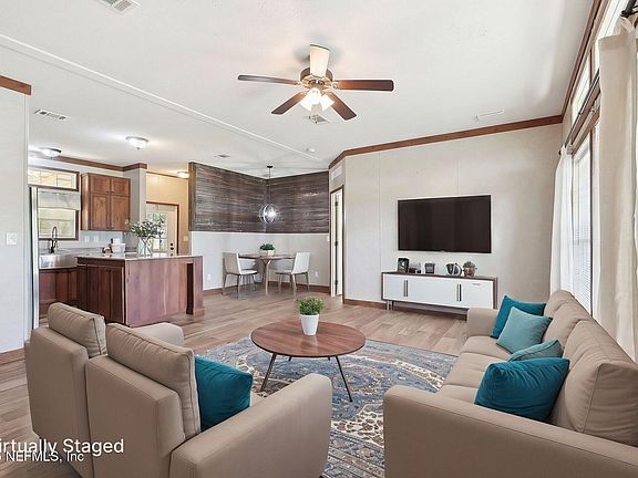 Escape to a tranquil lifestyle in this stunning 3 bedroom, 2 bathroom mobile home, perfectly situated on a serene canal leading directly to the St. Johns River! Built in 2022, this property boasts modern amenities, pristine condition, and breathtaking water views.