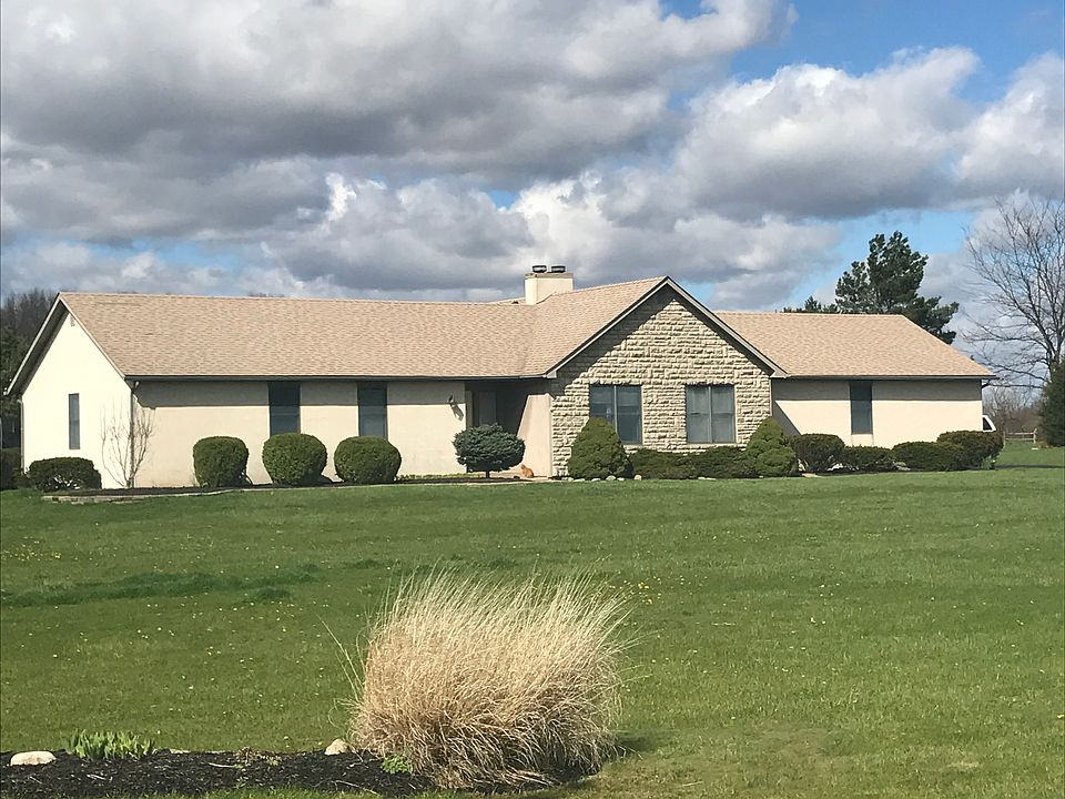 Beautiful Ranch on 2 acres! Gorgeous rare find one story home in the desirable Big Walnut School District. 3 bedrooms, 2 full bathrooms. Main living area has hardwood flooring and ceramic tile. Two wood burning fireplaces for cold winter nights, which are very enjoyable after a quick dip in the hot tub out back! You can enjoy music both inside and out with hard wired speakers both inside and out, with separate volume controls. Lots of storage in the basement. The large back yard has room for a trampoline, swing set, pole barns, animals, or all of it! Almost three acres to play with, and on! The shed out in the backyard is newly painted and reinforced where it was weathered. Minutes from Polaris and very close to new Tanger Mall. See A2A