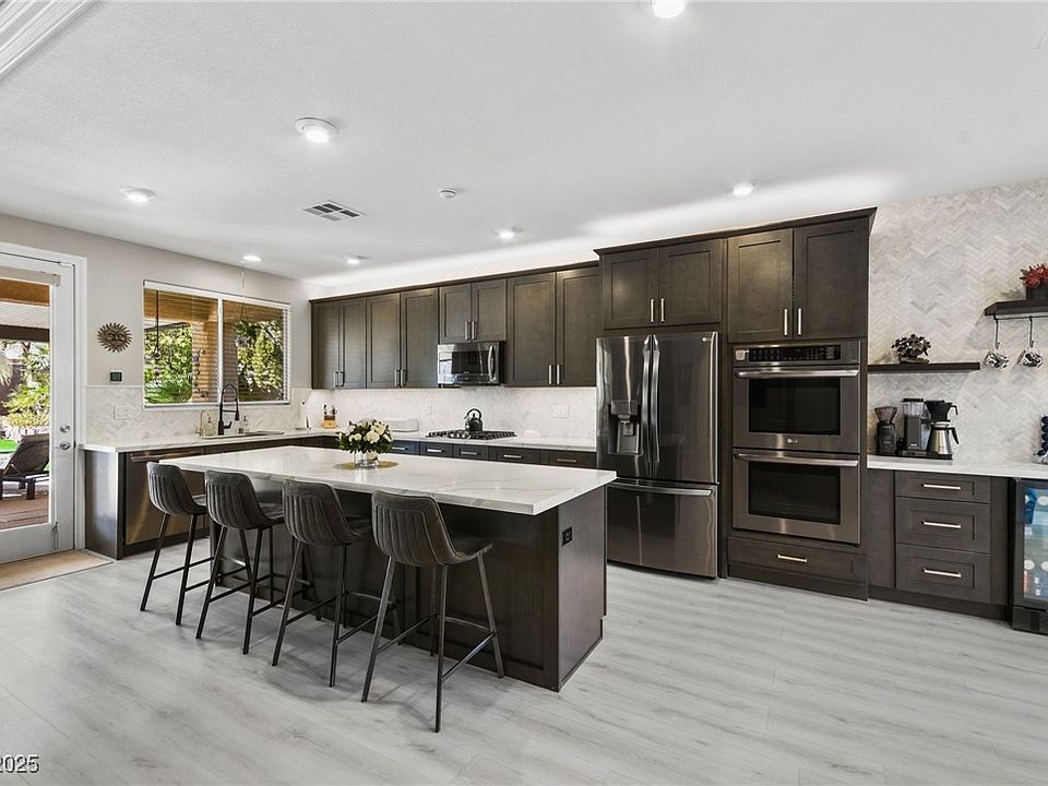 - Description: Breakfast Bar/Counter,Custom Cabinets,Island,Pantry,Stainless Steel Appliances