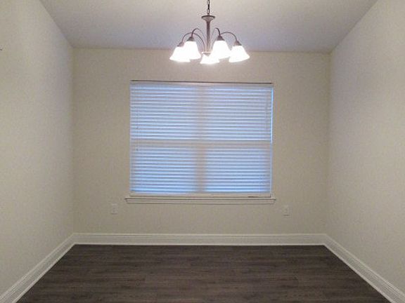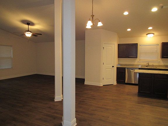 Open floor plan. Living room with high ceiling & ceiling fan. Formal dining room plus breakfast nook. Fully equipped kitchen with granite countertops, center island & pantry. Main suite with double vanity, garden tub & two oversized closets. Inside laundry with washer & dryer - units are "as is" - no warranty. Small pets considered with owner approval. No smokers.