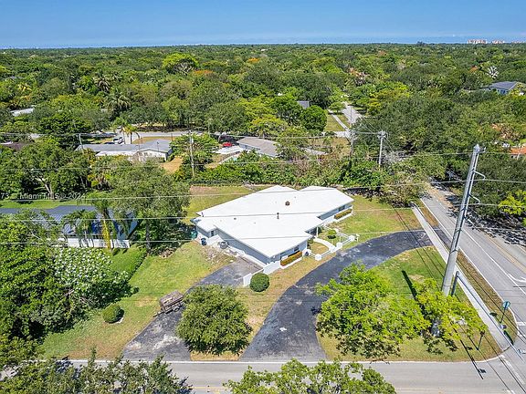 Freshly painted 3BR/2BA single family pool home on a corner lot in Pinecrest! This beautiful home features an open concept layout with new vinyl wood floors and exposed cathedral wood ceiling beams. New gourmet kitchen with modern white shaker cabinets, quartz counters and backsplash, stainless steel appliances, recessed lighting and eat-in island with cook top range. New A/C and air ducts. Spacious bedrooms with 2 walk-in closets, updated master bath and cabana bath for guests. Glass enclosed over-sized patio overlooking the pool, yard and new Clusia privacy hedge. 17k sf lot is perfect for boats or any number of toys. Circular driveway with separate driveway leading to AC cooled 2 car garage. Excellent location in an A+ school district.