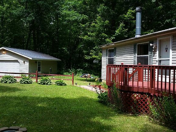 3 bed 3 ba home located on 5 acres of nice wooded property. Relax and enjoy the peace and quiet of the country and still be to town. Not your ordinary manufactered home, this fully upgraded home has fully finished basement with tons of storage, heated floor(kitchen & downstairs bath), fireplace(wood burning) and much more. Beautiful walk out to the woods and a private water hole where wildlife come to drink. Also has a large 2 car detached garage. A real MUST SEE!!