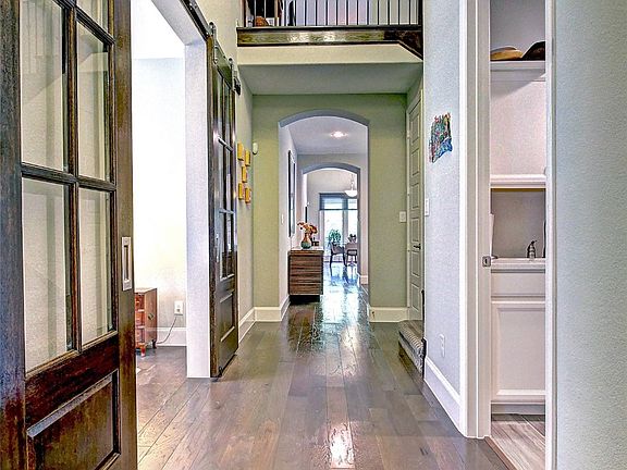 It's all about the location! Nestled in Stonehaven at The Tribute, this original build by Meritage Homes offers a bright, open floor plan with soaring ceilings, abundant natural light, and warm engineered hardwoods. Perfect for entertaining, the main level features the primary suite, a guest bedroom, and a versatile flex room with sliding barn doors — ideal for a home office, playroom, or cozy reading nook. An extended dining area with a dry bar and butler’s bar provides extra cabinets and countertop space, making gatherings effortless. The kitchen is designed with both function and style in mind, featuring stainless steel appliances, granite counters, a large island, and double-stacked custom cabinets with a built-in desk. The pantry includes custom spice racks to keep everything organized. The kitchen opens to the spacious living room, anchored by a decorative gas fireplace, creating the perfect spot to relax with family and friends. The private primary suite is a peaceful retreat, complete with automatic shades, a spa-like bathroom featuring a soaking garden tub, walk-in shower, and a generous closet. Upstairs, you’ll find a game room, two additional bedrooms, and a full bath, offering plenty of space for everyone. Step outside to the beautifully covered, oversized patio — perfect for entertaining. Plumbed for gas and outfitted with built-in speakers, recessed lighting, and ceiling fans, this outdoor living space overlooks scenic trails, creating a relaxing backdrop for gatherings or quiet evenings. The landscaped backyard provides plenty of room for play and enjoyment year-round. The tandem 3-car garage features epoxy flooring, built-in shelving, and a storage lift for ultimate convenience. Living in The Tribute means resort-style amenities at your doorstep — from pools, playgrounds, and pickleball courts to golf, trails, parks, and a new marina. This home perfectly blends everyday comfort with a vibrant, community-centered lifestyle.
