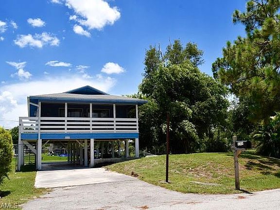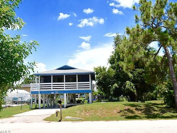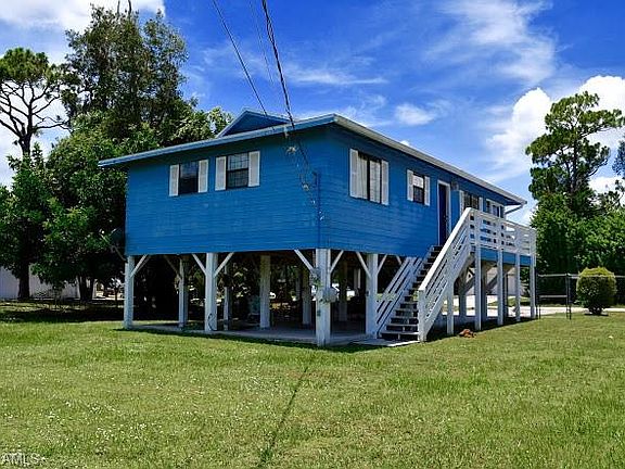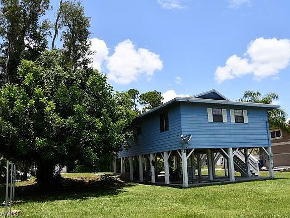 A super well kept elevated home in a central location in San Carlos Park. This two bedroom and one bath stilt home is super cozy and has ample open space. Property being sold "as is" and sits on a fenced double lot. Great room for expansion. The open lower area can easily fit two cars with loads of extra storage. The lot is completely fenced in, and provides ample space for family entertainment. The open floor plan has all laminate flooring, freshly painted interior, and exterior, and has loads of light streaming at every angle. This home has been loved and gently used, reflecting pride in ownership. Neighborhood is friendly and this price point is San Carlos park is affordable. Easy to show. Call for your appointment today.