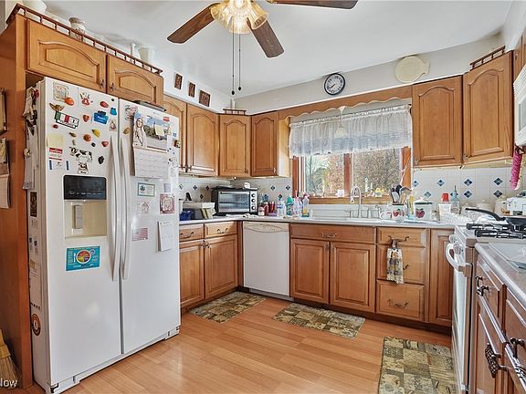 Welcome to a rare investment and lifestyle opportunity in the heart of Canfield! Perfectly situated on just under an acre in a highly desirable area known for its top-rated schools, peaceful surroundings, and easy access to shopping, dining, and major routes, this sprawling 5-bedroom, 2-bath vinyl-sided ranch offers endless potential for families and savvy investors alike. The bright sunroom with six sliding glass doors, a breezeway leading to a private back deck, and stunning wooded views create the perfect blend of comfort and nature. The main level features a fully equipped kitchen with all appliances, formal dining room, spacious living room, three bedrooms—including a generous master—and a beautifully updated full bath. The lower level offers a separate entrance and is ideal for an in-law suite, rental income, or multi-generational living, with a second full kitchen, two additional bedrooms, a cozy family room with fireplace, laundry, and storage. Outdoor living is enhanced by a walk-out patio, while the 2-car attached garage (with its own furnace and hot water tank), plus 3-car and 4-car detached garages, make this a dream for car enthusiasts, contractors, or anyone needing space for equipment or hobbies. Additional perks include a wood-burning alternate furnace for energy savings and public water/sewer available at the street. Whether you're looking for a spacious family retreat or an income-producing property, this Canfield gem checks all the boxes—schedule your showing today before it's gone!
