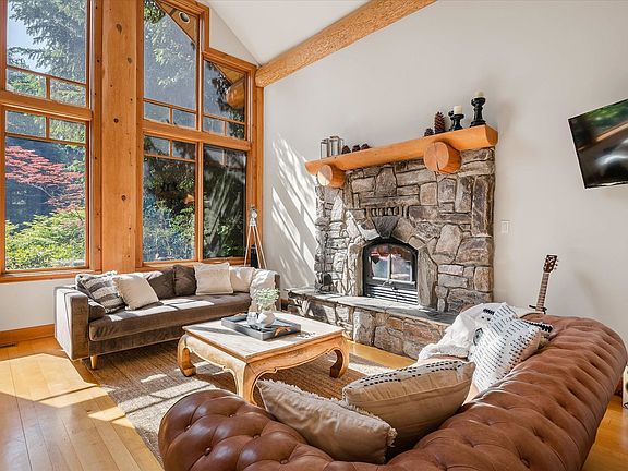 By the Nicklaus North Golf Course, you can find this beautiful 5-bedroom house. Huge log beams and stone decoration make the exterior a unique Whistler style. The open-concept kitchen, living room, and dining room face a sunny garden and can look through to the golf course. The floor-to-ceiling windows and vaulted ceiling bring abundant natural light into the living area all year around. The private hot tub and garage are must-haves in Whistler, for both owner use and tourist nightly rental purpose. Four bedrooms in the main house, plus a self-contained suite that can be incorporated into the main home. Nightly rental or owner’s unlimited use is allowed here. Golf Club, Whistler Valley Trail, mountain bike trails, and Green Lake Water Aerodrome are all steps away. Call before it is gone!