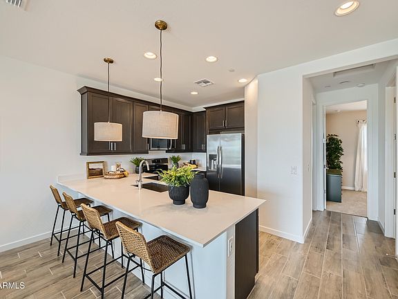 Seller will provide a credit towards a rate buydown and closing costs with preferred lender. Ask us how to save thousands over the life of your loan. Hawes Crossing is a new master-planned community in Mesa, AZ with close proximity to great local shopping, dining, and entertainment. Residents of this vibrant community enjoy exclusive onsite amenities such as a swimming pool, barbecue and picnic areas, basketball court, pickleball courts, playgrounds, and more—perfect for all ages to enjoy. This home comes fully equipped with all new stainless steel kitchen appliances and is complete with 7x22 tile flooring, quartz countertops, and maple latte cabinetry, thoughtfully crafted for comfort and function. Photos are of model home. A copy of the public report is available on the ADRE's website.