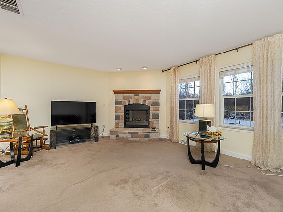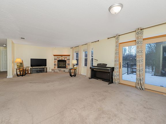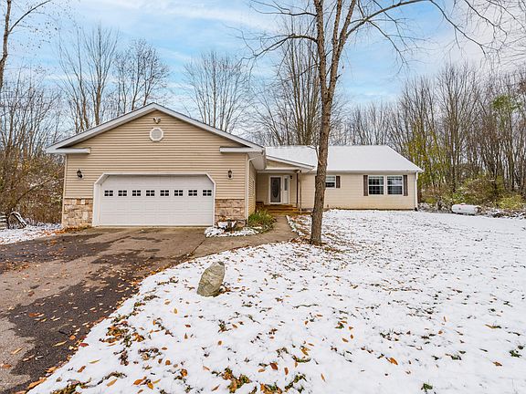 Escape to tranquility in this beautiful, spacious 1,800 sq ft ranch home, perfectly set on a generous 1.636-acre wooded lot, surrounded by a canopy of mature trees for unparalleled privacy and abundant wildlife viewing. The home features a large, inviting living room anchored by a cozy fireplace and a spacious, updated kitchen equipped with brand-new stainless steel appliances. A private primary suite is complemented by two additional full bathrooms. Outdoor living is easy on the expansive large deck, while the home offers excellent utility with an attached two-car garage, a substantial additional hoop barn for storage or hobbies, and plenty of easy-access storage space in the attic. This property perfectly blends comfortable, single-level living with a serene, nature-filled setting.