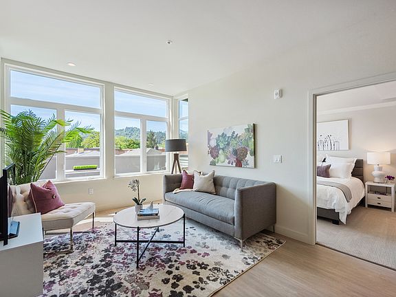 - Exterior features: 97 WalkScore - Walker's Paradise, Bicycle storage, EV Charging Stations, Expansive dual pane windows, High ceilings, High-speed Internet Ready, Keyless smart entry, New Amenities Coming Soon!, On-Site Management, Package Receiving, Pet Friendly Community, Short Term Lease, Sleek & Stylish roller shades, Sundeck, TV Lounge, View Type: Spectacular views of San Rafael, Wood-grain style flooring throughout living space