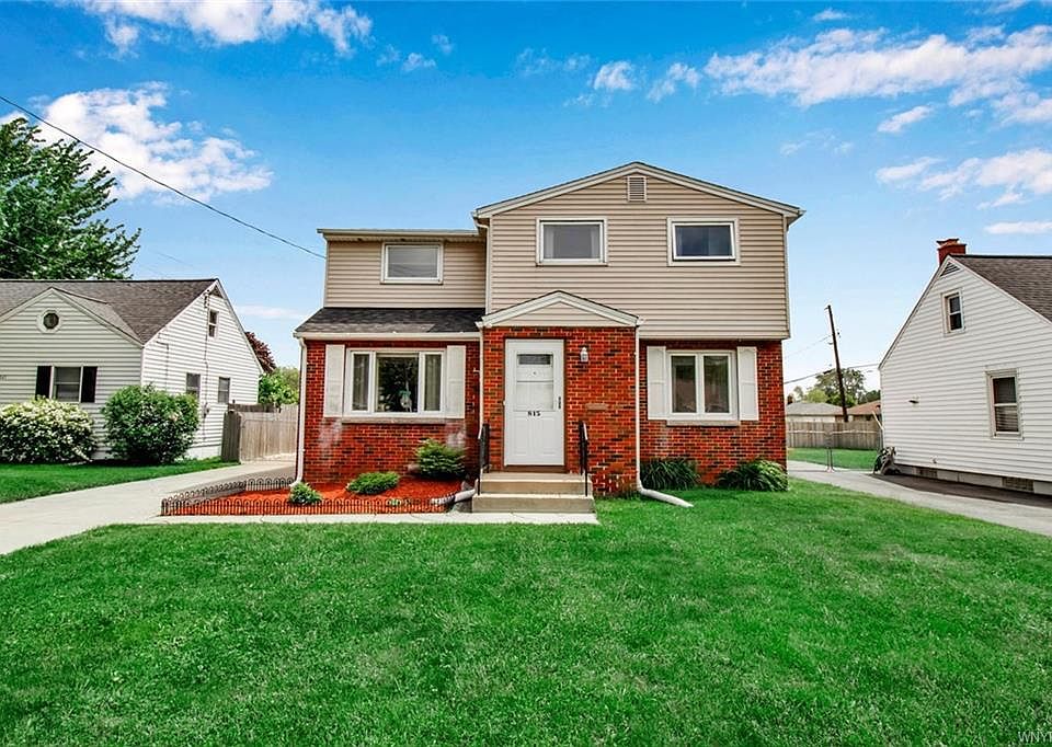Welcome home to 815 Beach rd. This charming brick & vinyl 4 bedroom 2 full bath & 2,050 sqft Colonial is minutes from the thruway. Well maintained home is move in ready! Upon entry of the home you will find large closets in both entry ways. The LR, DR, and FR all welcome you with natural light and natural wood throughout the home. Sliding glass door off the family room leads to a well maintained screened in porch overlooking a fully fenced in backyard. Freshly painted kitchen includes a pantry and all the appliances are included except the refrigerator. First floor full bathroom and first floor bedroom. Located upstairs are 3 large additional rooms & 2nd full bathroom all with large closets and ceiling fans. In the upstairs hallway are 2 additional closets/ linen & cedar closet. An abundance of storage space in this home. Dry basement is considered partially finished with baseboard heat and 5 additional bonus rooms. Egress access to outside from the basement sewing room. All basement windows are glass block. 1 1/2 car garage is in beautiful condition w/electric. Roof is only 8 years old w/ life-time warranty on the shingles and 10 year warranty on labor.