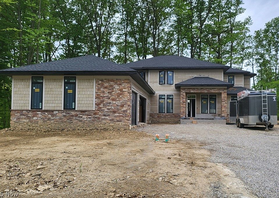 Introducing the latest masterpiece from the 2023 HBA Builder of the Year–Simcon Homes! This impeccably crafted custom floorplan caters to modern living, showcasing a seamless blend of transitional colonial architecture with a sophisticated exterior featuring a combination of stone, shake, and Hardi siding, delivering clean, elegant lines. Stepping onto the covered front porch welcomes you into the two-story foyer. At the heart of this home lies the Great Room–Kitchen–Dining Room space, flooded with natural light and boasting 9’ ceilings on the first floor, with an impressive 12’ ceiling height in the Great Room. Expanding the living space, a wall of windows and sliding door lead from the Great Room to the expansive 24x14 covered deck. The kitchen is a chef's dream, equipped with top-of-the-line appliances, a large center island with an eating bar, walk-in pantry, and granite countertops. The adjoining open Dining Room provides ample space for hosting gatherings of any size. Functionality meets style in the oversized Mud Room, featuring custom-built cabinets or lockers, a generous closet, and abundant storage for the family’s gear and seasonal apparel. Conveniently located on the first floor, an office with French doors offers a quiet workspace. The first floor Owner’s Suite serves as a private sanctuary, boasting a spacious, light-filled bedroom with access to the covered deck, a spa-like bath with an exquisite shower, and a walk-in closet that epitomizes luxury. Upstairs, three additional bedrooms, a loft space, and two full baths await. One bedroom enjoys the luxury of a private bath, while the remaining two bedrooms share a Jack & Jill Bath, each with its own sink. All bedrooms feature walk-in closets. Completing the home is a 4-car garage (with 3 car doors), providing ample space for vehicles, storage, and even a golf cart. Other lots are available, both on and off the golf course, offering further possibilities for customization and enjoyment. August Completion
