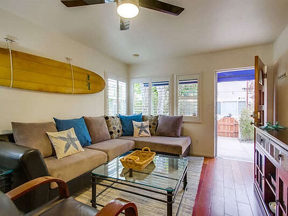 Front house facing Cohasset Court (no cars) has updated 2 bedroom/ 1 bath able to accommodate six (6) people. Cozy 1 bedroom 1 bath downstairs apartment with stove, refrigerator and laundry. Upstairs has upgraded 1bedroom, 1 bath with private deck. Steps to the Bay or cross the street to the Ocean. Front unit is available for short-term rentals, fully licensed by the City of San Diego, managed through Vacasa as Cohasset Paradise, Unit # 74149. Back Units (A & B) are managed by Bell Properties as year-round full-time rentals 619-523-2355. www.BellPropertiesSD.com