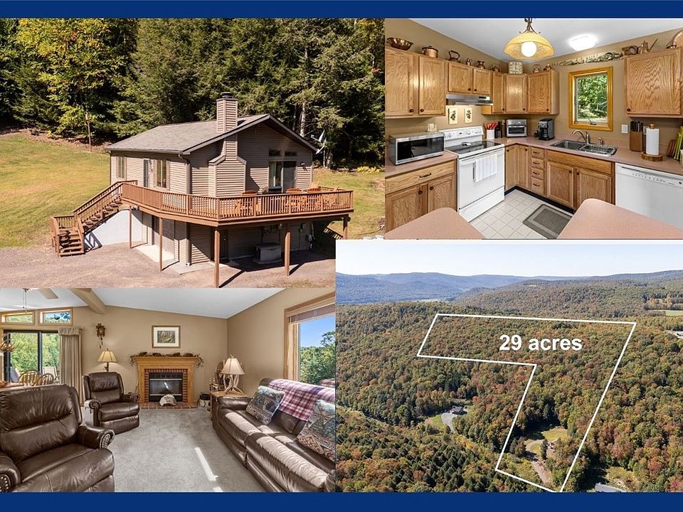 Set on 28 + acres rich with abundant wildlife, the property includes trails that wind through the woods and lead to an upper meadow, providing opportunities for hiking, exploring, riding ATVs, or simply enjoying the outdoors. Three custom-built enclosed and elevated blinds are also in place, making this an appealing choice for those who enjoy hunting.