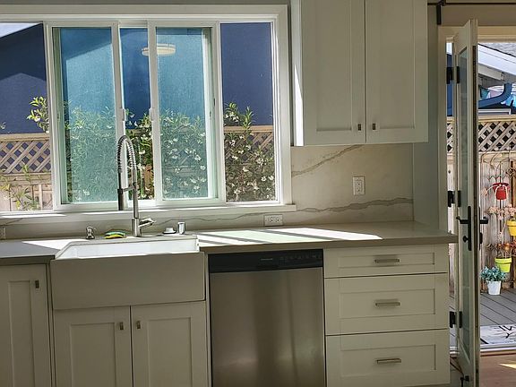 Located in the sunny beach side neighborhood of Linda Mar, a quiet garden in-law apartment awaits you within walking distance to beach!! Enjoy your morning coffee on a private deck and sample a taste of relaxing coastal living at its finest. The layout is a 1 bed/1 bath in-law apartment with its own separate french door entrance and backyard area. The kitchen/dining/living room area is open concept. The kitchen and dining area have tiled flooring. The kitchen is updated and has a farm sink, gas range, stainless steel refrigerator with ice and water dispenser, stainless steel dishwasher, and quartz countertops. Open and airy, you'll find it is very quiet without any neighbors above or below--only one shared (insulated) wall--similar to a duplex. The bedroom is large enough to accommodate a king-sized bed, with mirrored closet doors, sliding patio doors, and an extra closet space for storage. The bathroom has a stall shower only with a new vanity and toilet. Within walking distance to the beach, Safeway, Starbucks, restaurants, banks, and post office--among many other commodities--you'll find the location to be both functional and convenient. Gardening is included. 2 PERSON MAX OCCUPANCY due to Pacifica Code If you have any questions or would like to schedule a private showing, please send an email message. Available to rent immediately; August 1 or September 1 One small dog only TENANT TO PAY FLAT RATE: $350 FOR PG&E, WATER, GARBAGE, GARDENING, WIFI ADDT'L $125 FOR PET RENT; STREET PARKING; LAUNDRY DRYER/WASHER INCLUDED