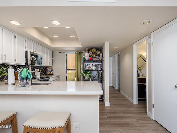 Move-In Ready Townhome! Welcome to this stylish North Phoenix townhome, offering comfort, convenience and a fantastic location just minutes from shopping, dining and easy freeway access (I-17, 51 & 101). With thoughtful updates throughout , this home blends modern touches with plenty of opportunity to make it your own. Highlights: Two spacious primary bedrooms, each with its own large walk-in closet. Two refreshed bathrooms upstairs plus a convenient half bath downstairs. Bright family room with an updated fireplace and open layout. Sunny dining area seats six. Updated kitchen with quartz counters, bar seating, white cabinets and modern appliances. Separate laundry room. Private patio, wood-look tile floors, attached 1 car garage, plus community pool and prime location! Additional Reserved parking space for Unit 55. Storage space in garage and under staircase as a bonus.