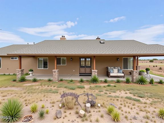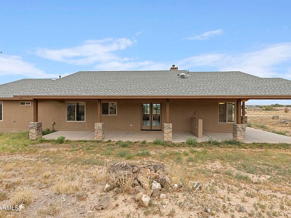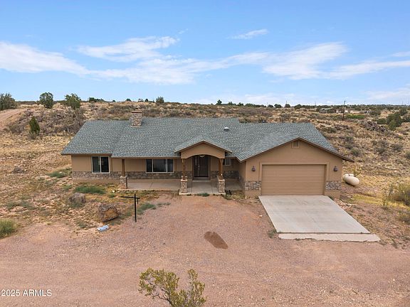 HUGE PRICE ADJUSTMENT! The owners are sad to say goodbye as they have relocated, which means this well-built, ENERGY EFFICIENT custom home is now available at a newly REDUCED PRICE! This 3 bedroom, 2 bath residence was built on an insulated concrete slab and features a spacious split floorplan, with vaulted ceilings and a FIREPLACE connecting the great room to the primary suite. Enjoy tile flooring throughout the main areas, and NEW CARPET in the bedrooms. FRESH PAINT, throughout the interior adds a crisp, clean feel. Additional highlights include epoxy-coated floors in the 2- car garage, a low-maintenance yard with an extra-long covered patio to enjoy perfect VIEWS of the surrounding mountains. Don't miss this unique opportunity to own a hidden gem in a quiet and scenic location with breathtaking views.