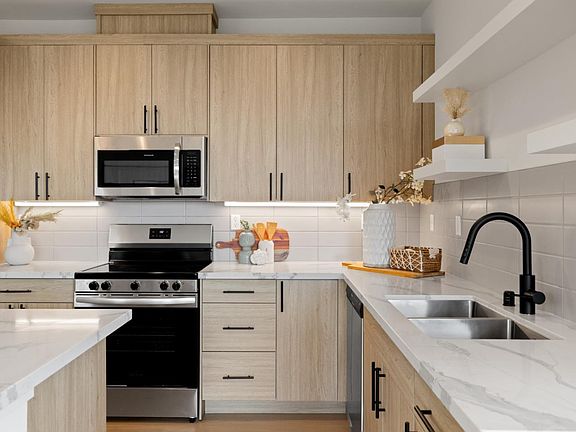 Step inside to discover an open-concept layout filled with natural light, featuring high ceilings, sleek finishes, and expansive windows that frame the dramatic landscape. The living area flows seamlessly into a spacious kitchen equipped with quartz countertops, stainless steel appliances, and ample cabinetryperfect for both everyday living and entertaining.
