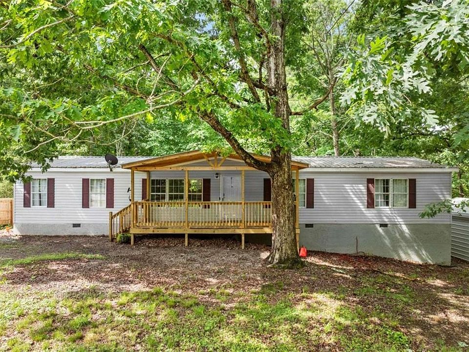 This beautiful 4BR/2BA mobile home sits on 2.4 acres. Close to 365 for easy commute. Split floor plan is perfect for your growing family. Large Primary Bed/Bath complete with garden tub and separate shower. The large living room, dining and kitchen area is great for get togethers and entertaining. The den has a beautiful wood burning fire place for those chilly evenings. The rocking chair front porch is perfect for morning coffee or evening tea. The back yard is fenced in for your young children or pets. The detached garage has plenty of space for auto and storage and there is a chicken coop in the yard for your chickens too! This home was remodeled less than 2 years ago. The roof, HVAC, flooring and appliances were all replaced during the remodel.