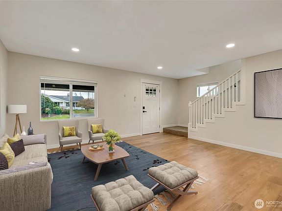 Nestled in desirable North Everett, this beautifully updated 3 bed, 2.5 bath home offers both modern comfort and stunning views. Recent upgrades include a new roof, siding, gutters, front fencing, fresh sod, and a pass-through garage for easy backyard access. The new patio is ideal for entertaining or relaxing. Inside, you'll find all-new bathrooms, energy-efficient mini splits with A/C, new flooring, windows, lighting, and a fully remodeled kitchen with sleek white cabinets and Calacatta Quartz counters. Enjoy water and Cascade Mountain views from the bedrooms, or backyard. Conveniently located near colleges, Providence, parks, golf, and the Everett waterfront. No egress window in basement. ADU potential—verify w/ city.