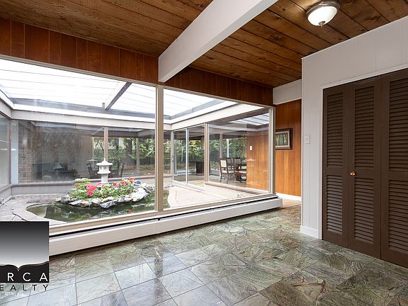 Large lotPeaceful surroundingsElegant indoor koi pondLush floral accentsModern kitchenPrivate landscaped backyard