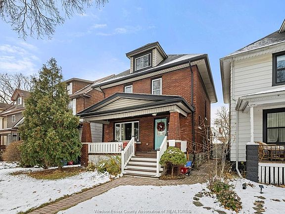 Welcome to this charming fully brick 3+1 bedroom home in the heart of historic Walkerville. Warm character shines throughout, from the built-in bookshelves to the inviting covered front porch, perfect for slow mornings with a coffee. Thoughtfully updated for peace of mind, this home features a newer furnace and AC (2018), rear parking added in 2018, porch redone in 2021, EcoBee thermostat, attic upgrades completed in 2023, and an energy assessment done in 2019. The beautifully landscaped front and back gardens offer seasonal perennials and raised garden beds filled with premium soil for the gardening enthusiast & pergola with curtains perfect for entertaining. Inside, you’ll find three bedrooms plus a bonus room ideal for a guest room or office, a bright main bath, and a basement with potential for an additional bathroom thanks to an existing toilet flange. A Walkerville classic with modern comfort, ready to welcome its next owner!
