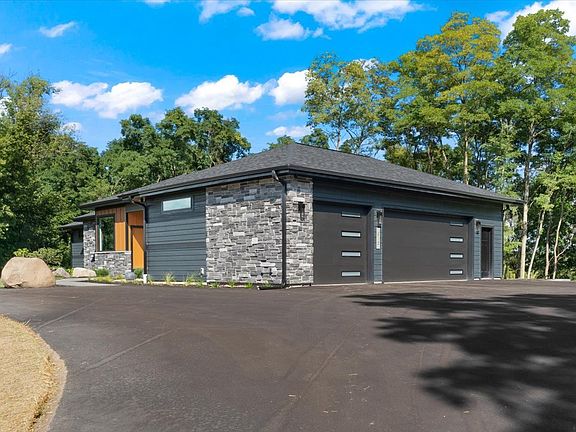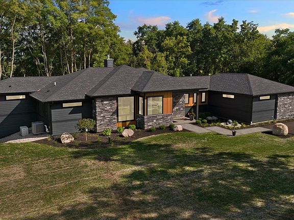 Private Luxury Executive Turn-key Home! Winner of the 2024 Midwest Home Design Award and the 2024 Home & Design Award featured in Milwaukee Magazine, this remarkable residence of refined living space on 4.58 wooded acres is nestled in lush greenery with tranquil lake views. This fully furnished, move-in ready home combines award-winning design with modern comfort, creating a private retreat like no other. This home features a sunroom, a chef's kitchen with top-tier appliances, a cozy fireplace, a dedicated spa room, and a private fitness center. The seamless flow extends outdoors, where a scenic balcony and expansive patio connected to the walk-out basement provide the ideal setting to relax or entertain. Schedule your private showing today to experience this award-winning firsthand!