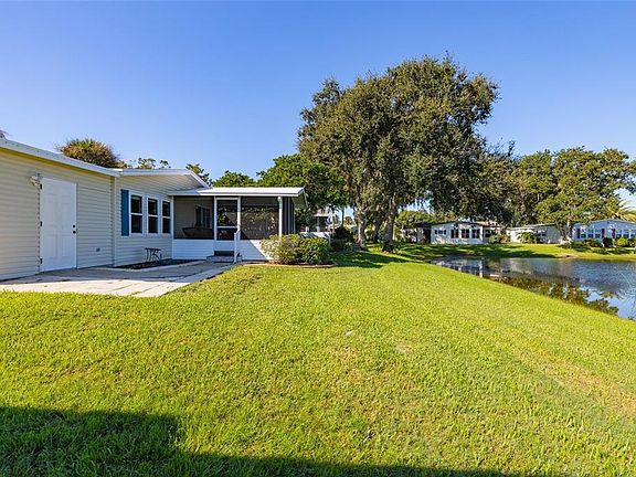 LAKEFRONT LOVELY HOME WITH 1 CAR GARAGE. Watch the ducks and fish from stocked lake while having your coffee. Kitchen Granite counter tops. Ms, Clean lives here. Utility room also has room for your office. Roof 2020, A/C 2020, water heater 2020, New windows/front door 2021, garage door w/opener, shower 5/24, washer/dryer 2023, outside curbing entire house. New Clubhouse target date is 4/26/26 which includes the fitness center and woodworking shop. Assessment paid in full. Pool, spa and outside sports open - pickleball, tennis, bocci, shuffleboard. Other activities being held at other areas as Edgewater Landing is very active. Resident intracoastal boat ramp and area to watch the shuttles and dolphins or just have a picnic. Walk to the boat launch. Community gazebo. Don't miss this one! Low HOA includes internet and cable plus includes either an outside storage for either a boat or RV if available and then you are on a waiting list. Close to shopping, beaches and the airports. RESORT LIVING EVERY DAY!