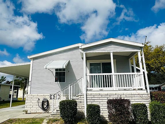 Located on lot 0067...discover the perfect blend of comfort and convenience in this charming 2BR/2BA home in our vibrant 55+ community. Some of the features include: ONE OWNER, BRAND NEW 5-ton Central A/C and Heat with LIFETIME transferrable warranty, Pre-wired for generator hookup and includes a portable generator, Awnings that easily convert into hurricane shutters, Handicap bathroom railings, and Brand New carpet. TV's are included with home. Centrally located to north & south amenities and nestled on a spacious corner lot, this home offers a bright and airy open floor plan with modern finishes, neutral color scheme, and new carpeting throughout. Additionally, kick up your feet and relax in your favorite chair as you soak up the Florida sunshine on the street-facing front deck. Enjoy the tranquility of true community living while being just minutes away from shopping and dining. Don't miss out on this exceptional opportunity to embrace the lifestyle you've been dreaming of - call to schedule your in-person showing today!