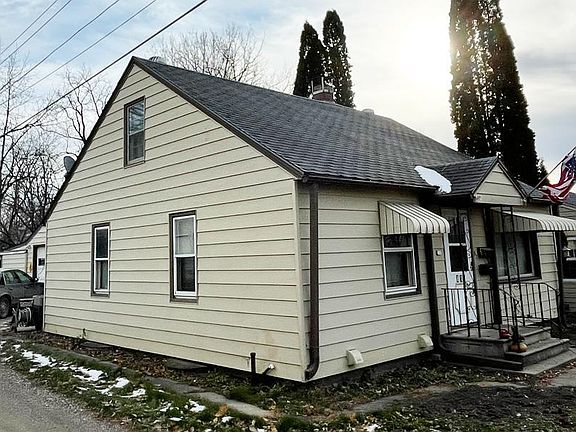 Simple layout in this 2-bed, 1-bath home, ready for your updates and creative touch. The home features steel siding, newer windows, 2-car detached garage, hardwood floors, and an unfinished upstairs with windows and a dormer. Selling "as is".