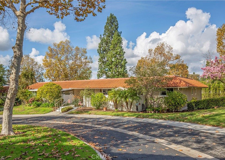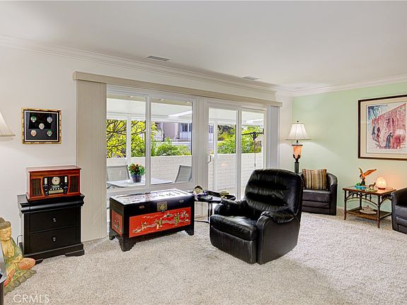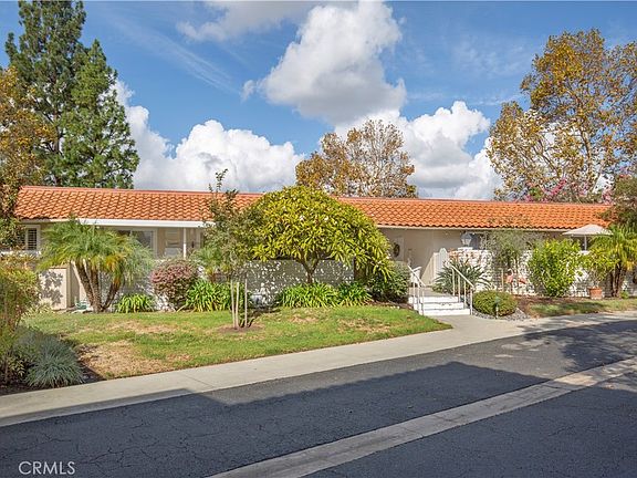 Nestled in a premium area of the community known as Nob Hill, this Casa Linda Garden Model has no one above or below. Located in a lovely Cul-de-Sac with parking right in front of your new home. From the inside, you will love looking out towards a view of the beautiful plumeria tree, pigmy palms and other lush foliage surrounding the home. This warm and meticulously maintained home features 2 bedrooms 1 ¾ baths, approximately 1010 Sq. Ft. of living space and comes complete with numerous upgrades including; central heating/air, dual pane windows, smooth ceilings, crown molding in the living and dining room, newer entry door with glass insert, plantation shutters in the kitchen, master bedroom and master bath, stacked washer/dryer, ceiling fan in the dining room and master bedroom, mirrored closet doors in the master bedroom, custom closet doors and shelving in the guest bedroom, updated clear shower door in the master bath, a solar tube as you enter the kitchen and another in the guest bath infuse light into the home, the flooring is a combination of carpet and tile. The water heater has been relocated outside allowing extra closet space in the master bedroom. Fabulous tiled front patio features a new custom patio cover with several translucent panels allowing the light to pass through but block rain and UV rays, the patio wall has been lowered so you can enjoy the view. Kitchen features many original components maintained by the HOA, the owner added pull out shelving in the cabinets below the cooktop and a spice rack inside the pantry. The carport is conveniently located just to the left of the home; it has upper and lower cabinets providing extra storage. Truly a wonderful home, offering carefree living at an exceptional price. Make this lovely home yours and start enjoying all the amenities of Laguna Woods Village ~ Senior Living at its Finest ~ With 7 Clubhouses, 5 Pools, 2 Fitness Centers, 10 Tennis & Pickleball Courts, Private Library, 2 Professional Golf Courses, Private Restaurant & Lounge, Equestrian Center with Stables, 10 Craft Workshops, an 814 seat Auditorium/Theater & the list goes on. In addition, there are over 200 clubs & organizations providing an enjoyable & diversified opportunity for everyone. Just minutes from World Class Beaches, Restaurants, Shopping, Entertainment & Easy Freeway Access