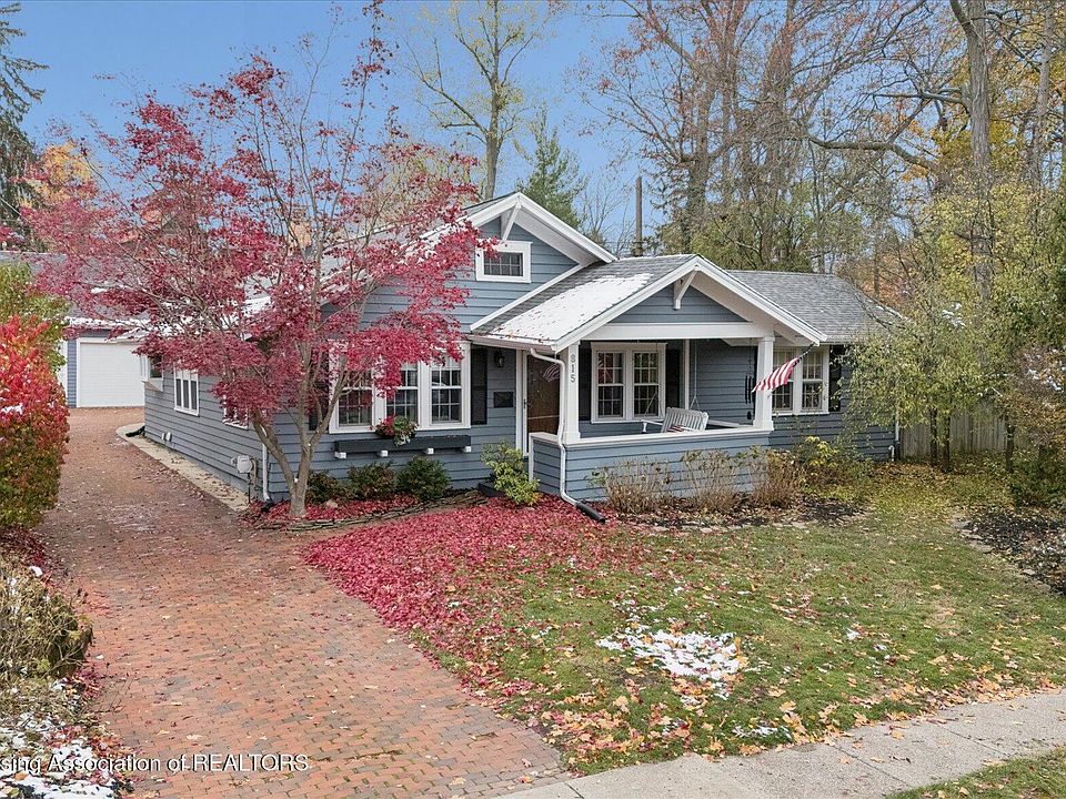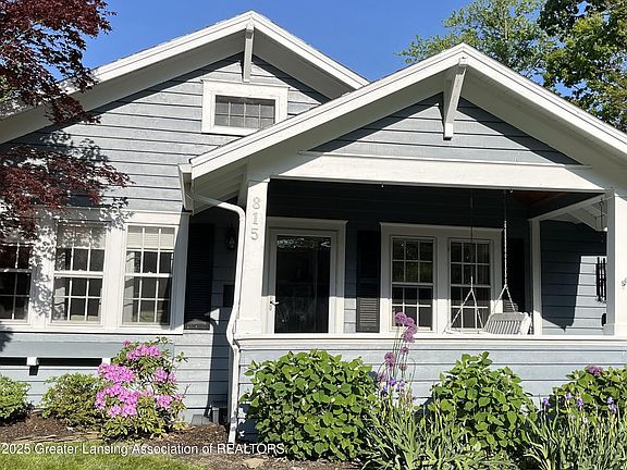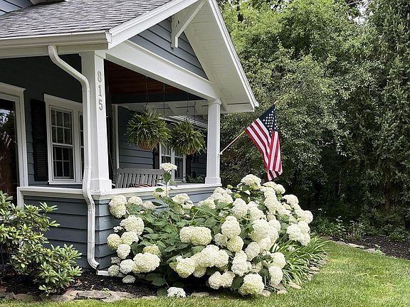 Welcome to this Craftsman home with aesthetic and charming appeal including a swing on the front porch and a brick paver driveway. Over $75,000 worth of improvements have been made in the last 2 years including a new tear-off roof with 4 skylights, leaf guards on gutters, new garage doors and openers, new shower in primary bathroom, custom blinds and curtains, re-built exterior chimney, exterior and interior painting. You will love the cozy feel of the hardwood floors throughout, updated kitchen with stainless appliances, large and bright back-room addition with door to private, paver patio. Walk-up attic storage. Music or office room off living area. The extra-big lot includes a garden area, trellis overhang, ample paver patio, garden shed and/or storage space in the detached garage.