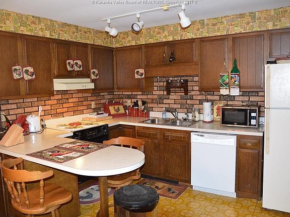 All brick ranch on a huge, level lot with a fenced backyard. Country kitchen features a bar. Enclosed breezeway great for additional seating or storage. Oversized garage. Relax on your covered front deck. 1 yr-old roof & gutters. Propane generator. Convenient to I-79 Elkview or I-77 Sissonville. Welcome Home!