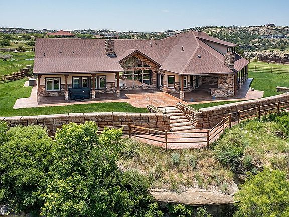 Outdoor living is elevated to a new level with a cozy back patio featuring a fireplace and gas line for fire pits or gas cookware. Relax and enjoy nature with multiple ponds, a balcony overlooking the canyon, and private hiking trails with a fence along the rim for safety and privacy.