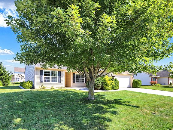 You will be impressed as you walk into this beautifully upgraded 3BR/2BA home with 1,643 square feet of living space in the sought-after Oriole Point subdivision in Avon. The recently updated kitchen features quartz countertops, 42-inch upper cabinets, and a single basin granite composite sink. The Great Room and Master Bedroom offer cathedral ceilings, while the Master Bath includes a large garden tub and marble vanities. Upgrades include a hard-wired security system, Great Room surround sound, luxury vinyl planking, and Karastan carpet. The home also features cordless blinds, a sliding door with internal blinds, and a water softener. The exterior includes a 20 ft by 12 ft concrete patio with a privacy hedge, an inviting backyard with eight trees, and fresh exterior trim paint. The roof is 5 years old, and the gas water heater was replaced 1 year ago. This quiet neighborhood offers convenience to schools, shopping, restaurants, and parks. Schedule your showing today-this one won't last long!