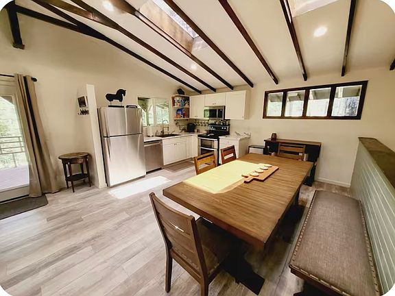 Remodeled Cabin in the woods with modern amenities! New paint, windows, lighting, flooring, bathrooms and fully furnished! 3 bedroom, 2 bath upstairs unit with new paint, beautiful skylights, heat/ac options and a large porch for relaxing and entertaining! Plenty of parking and wifi included! Quiet neighborhood nest in nature's natural setting, with Prescott main less than 15 miles away!