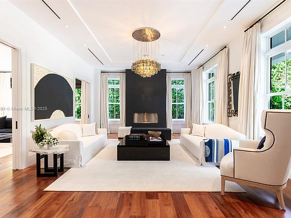 Designed by architect Raul Sotolongo, this impeccable 9,527 SF estate blends timeless elegance with Southern contemporary charm on a 42,900 SF lot. Soaring ceilings, walnut hardwood floors, and a grand living room with a fireplace create an inviting ambiance. The gourmet kitchen features a Calacatta marble island, Wolf and Sub-Zero appliances. Expansive 1st and 2nd-floor covered terraces offer exceptional space for relaxation and entertaining. Lush landscaping, enhanced by Lutron-controlled lighting, surrounds a heated saltwater pool, cabana bath, and a covered pavilion with a summer kitchen and Alfresco grill. A wet bar, upstairs family room, Sonos system, kinetic water system and generator add to the home's luxury and comfort. A true sanctuary offering privacy, and sophistication