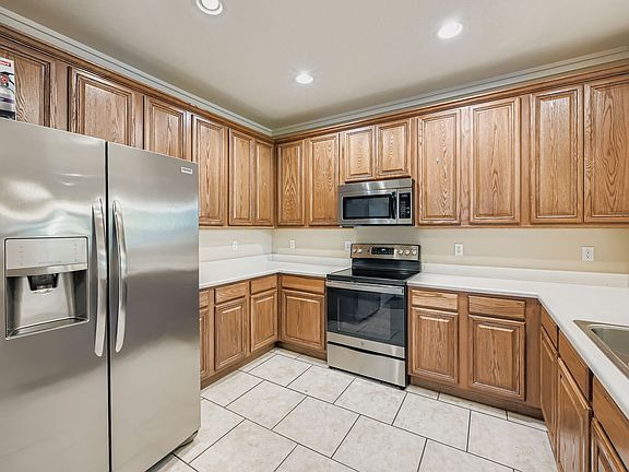 Available November 1st, 2025. Beautiful End-Unit Townhome features 3 large Bedrooms, 2.5 Bathrooms and an attached Finished Oversized Two Stall Garage with Storage Room. The Large Master Bathroom includes a garden tub. This Pulte Home has all of the upgrades, bathrooms are all tiled, and there is wood flooring in the living room. The kitchen's newer stainless steel appliances include a refrigerator, dishwasher, microwave, and glass top range/oven. Washer/Dryer are included. The Townhome includes Recessed Lighting, Ceiling Fans, Central Air Conditioning, Custom Window Coverings, Double Vanity in all 3 bathrooms. Extremely close to Fort Carson and Peterson AFB, shopping centers, and within a very short walk to the Cross Creek Regional Park.