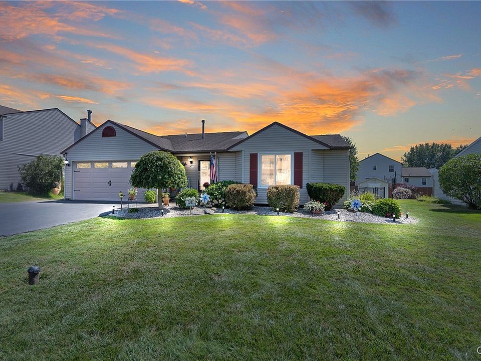 Welcome to this beautifully updated transitional "front-to-back" split level home in the Town of Clay! This 3-bedroom, 1.5-bath home with a 2-car garage offers space, style, and comfort. Step into the ceramic tile entry foyer and into the oversized great room featuring a cathedral ceiling and gleaming hardwood floors. The cathedral ceiling continues into the dream kitchen, showcasing “Harvest Maple” cabinetry, Silestone countertops, pantry, built-in hutch with wine rack, and custom ceramic flooring. The lower level offers a spacious family room, half bath, and laundry/storage area. On the upper level, you’ll find three bedrooms—including a large primary bedroom—and a full bath. Outside, enjoy your fully fenced backyard with a pool and deck complete with canopy—perfect for summer gatherings. This home is loaded with updates and newer mechanicals. Conveniently located near shopping, entertainment, parks, and recreation. Move-in ready and waiting for you! Seller can accommodate a quick closing. Showings start on Friday the 22nd.