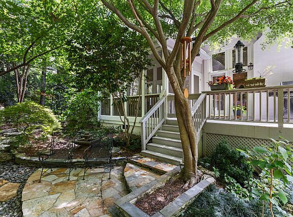 Tranquil backyard water featureHardwood floorsPeaceful walkable settingMature landscapingSpacious screened porchGenerous natural lightMain-floor primary suite