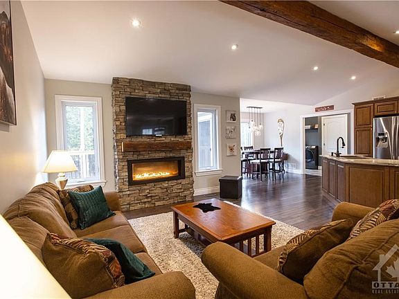 This charming custom-built 3+2 bdrm, 3 bath bungalow nestled on over 1 acre is beautifully designed! Attention to detail, quality of materials and workmanship is evident. As you enter, the spacious foyer welcomes you to the open concept living space, vaulted ceiling w/ a rustic wood beam & a perfectly appointed stone fireplace & custom wood mantel. Hardwood flooring throughout, spacious kitchen w/plenty of cabinets, sun-filled dining room, large primary bedroom w/ an ensuite & walk in closet. The spa-like ensuite features a double sink vanity w/ a glass walk-in shower. Two additional bedrooms, main floor laundry & mudroom complete the main level. The finished basement features a large open family room, 2 bdrm w/ W.I.C and a full bathroom. This beautifully landscaped property offers an oversized dbl garage with space for a workshop, walking trails, large deck, and pool. Offers to be presented Tues., Nov. 30th 2021, 6 PM. Sellers reserve the right to review & accept pre-emptive offers.