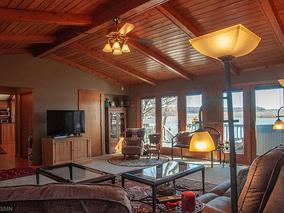 Charming walk-out rambler set back on 0.57 acre lot with a 111 feet of shoreline on the Mississippi River. This 2 bedroom 2 bath home features a vaulted great room with a wall of windows facing the river, a spacious kitchen with granite counters & stainless steel appliances and a large dining area perfect for those family gatherings. The home has a ton of updates including newer windows, patio doors, 2 new fireplaces, furnace, newer roof, siding and hot tub/spa. Enjoy summer evenings on the spacious deck or backyard while watching eagles soar over the river. Dock included! Don't miss your opportunity to own this wonderful home that has so many places to relax or entertain!