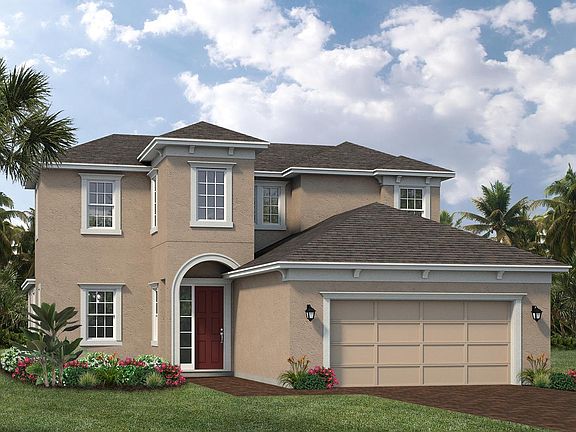 (2123 sq.. ft.) is a 2-story home with 3 bedrooms, 2.5 bathrooms, 2 car garage, great room, kitchen with cafe area, flex room, and covered lanai. Additional options include bonus room with 3rd bathroom, bonus room with 4th bedroom and 3rd bathroom, extended lanai, study, master bathroom with bathtub removed. (Optional bonus room / 4th bedroom add an additional 268 sq. ft.).